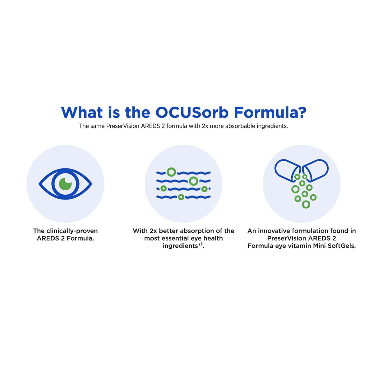 PreserVision® AREDS 2 Formula MiniGels with OCUSorb™ Technology is an advanced eye health supplement that delivers the same clinically proven AREDS 2 formula with enhanced absorption. The OCUSorb™ formulation has been clinically shown to provide 2x more absorption of lutein and zeaxanthin compared to the original AREDS 2 MiniGels, ensuring greater support for macular health and long-term vision protection.